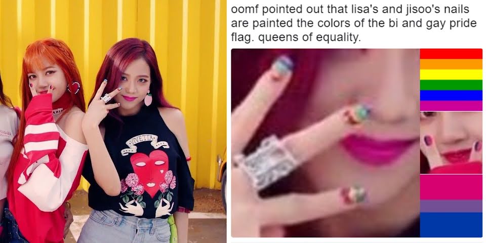 2) Blackpink – wielokrotnie wspierały osoby LGBT, przykładowo mają pomalowane paznokcie na tęczowy kolor.